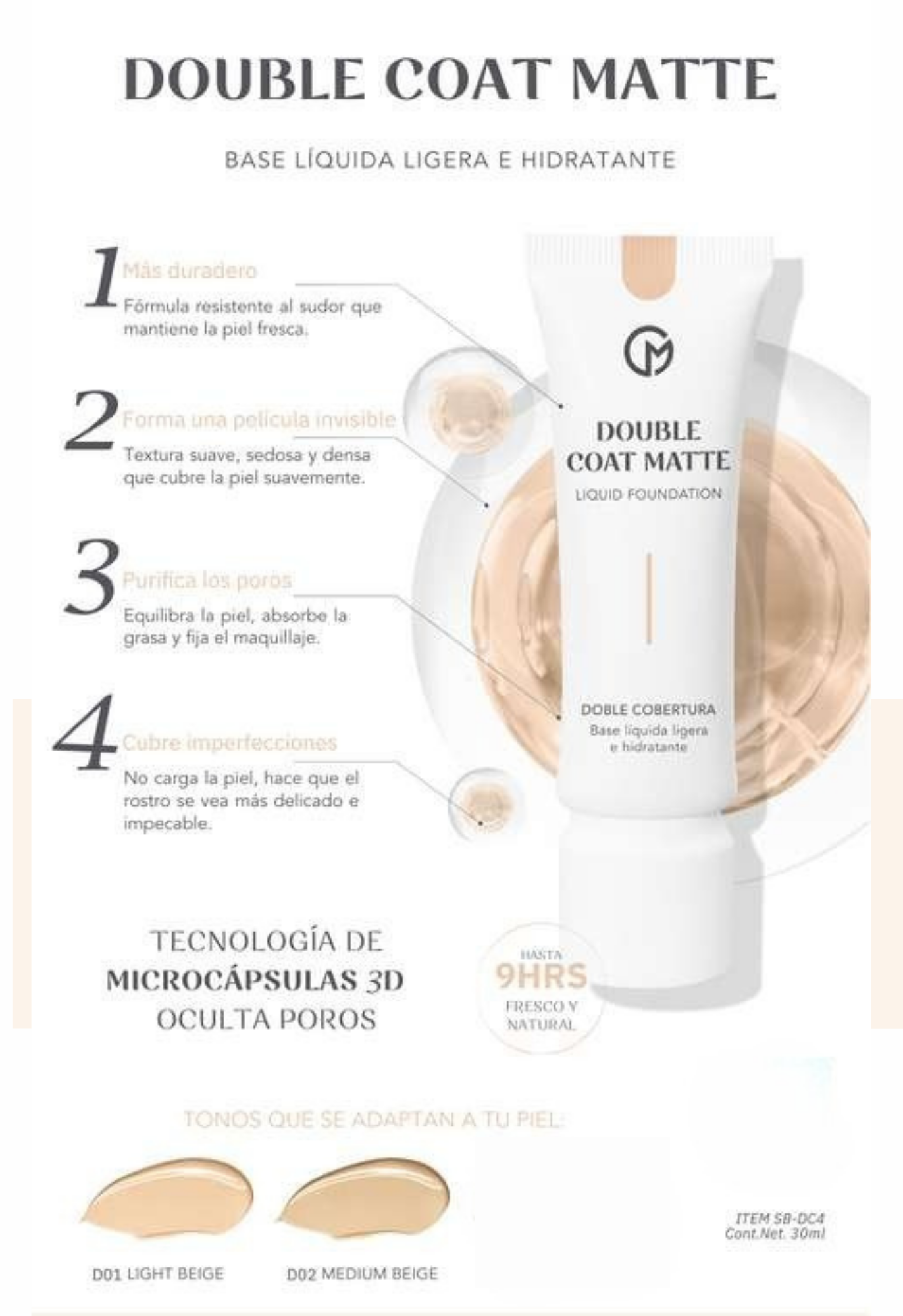 02 Medium Beige: Acabado mate invisible para pieles en tonos medios